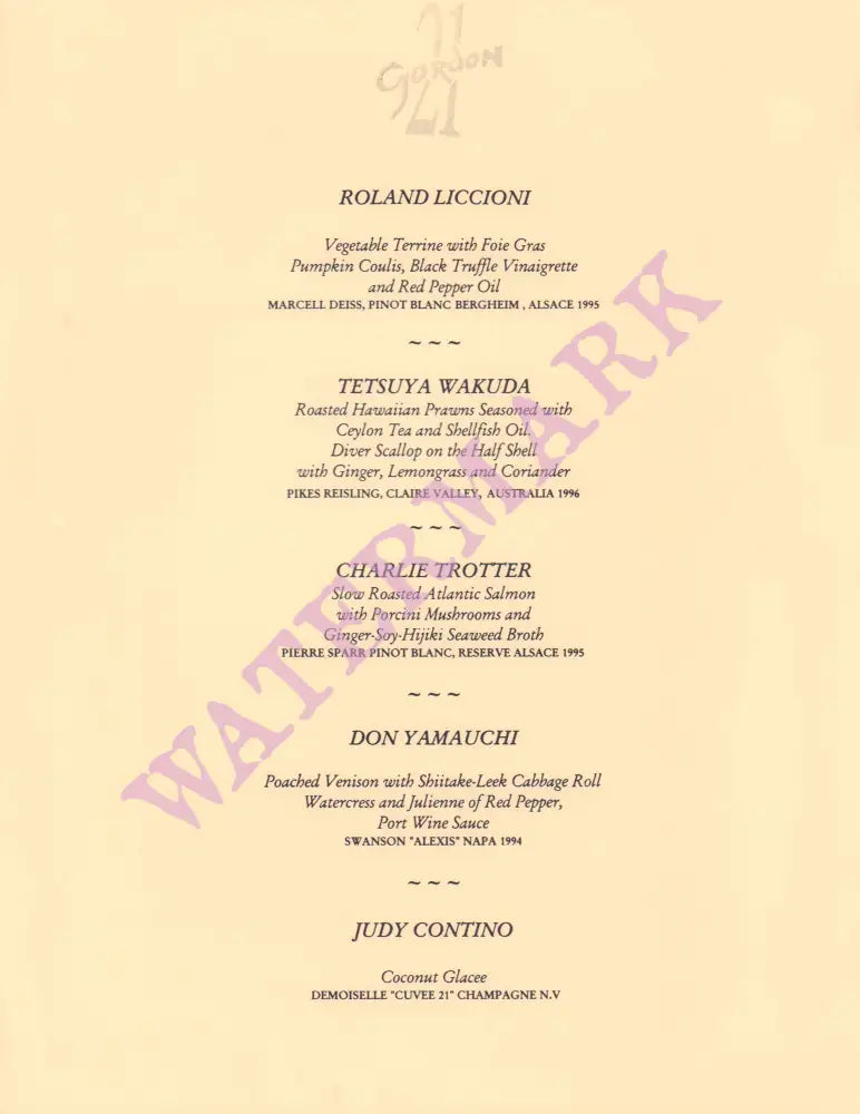 The interior menu is from Gordon’s 21st anniversary dinner in 1997.