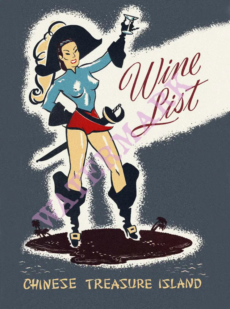 This swashbuckling lady pirate was on the front cover of the wine and drinks list at the Chinese Treasure Island nightclub in Washington DC.