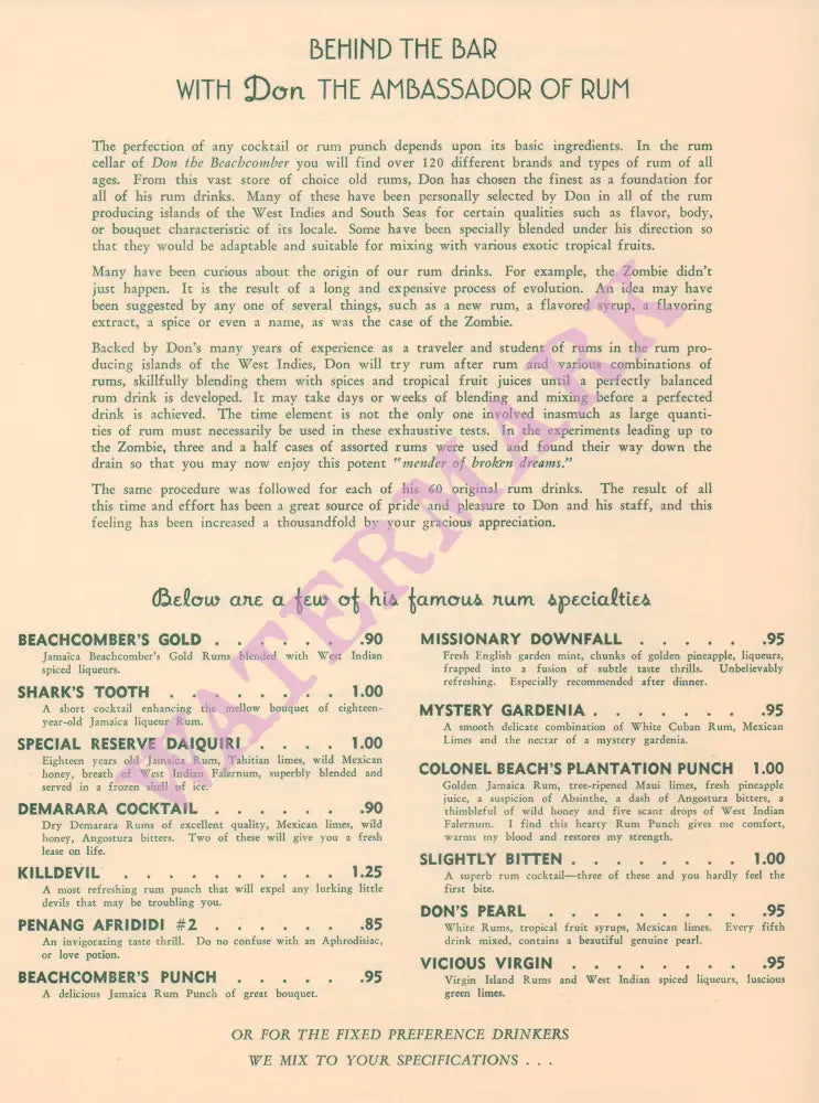 A clever showman, Don Beach (he had changed his name) faked the sound of rain falling on the tin roof, offered leis to customers and coined the motto; ‘If you can’t get to paradise, I’ll bring it to you.’