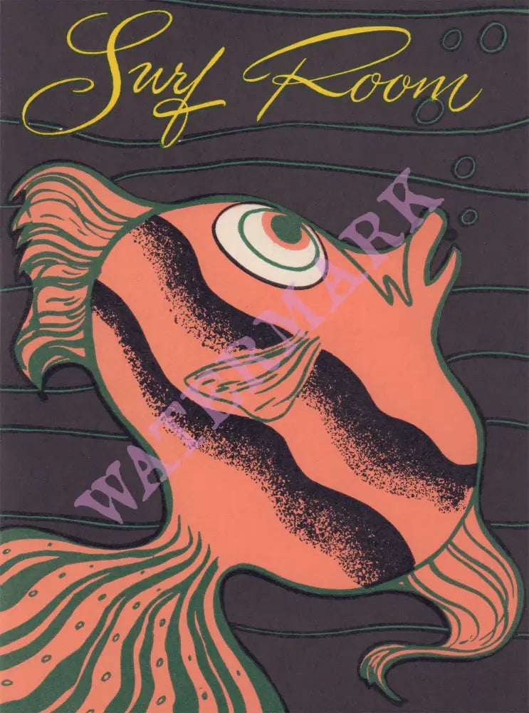 This drinks menu showing an exotic fish looking upwards from the depths of the ocean twas for the hotel’s elegant Surf Room restaurant, open-sided so that guests could dine while gazing at the ocean or watching the moon rise over Diamond Head.