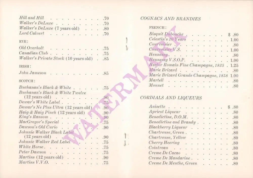 We believe this menu was from the 1950s when guests from the Golden age of Hollywood such as Marilyn Monroe, Natalie Wood, Dean Martin and Shirley Temple were among the guests at the hotel.