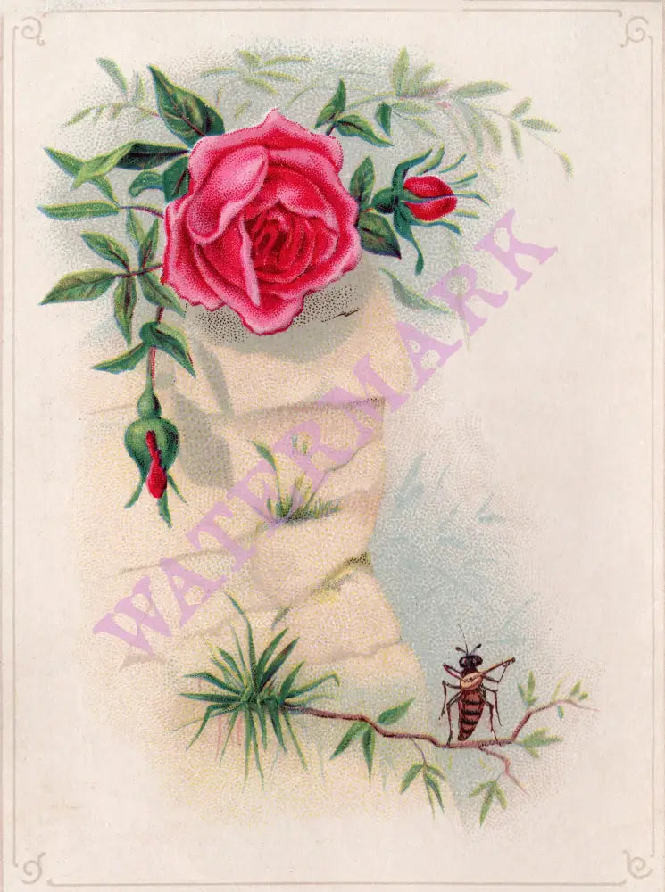 The Idanha Hotel opened in the rough and tumble frontier town of Soda Springs, Idaho, in 1887 as a luxury resort. On this delicate, hand-painted menu image from the hotel’s dining room, you will see an insect playing sweet music alongside a rose.