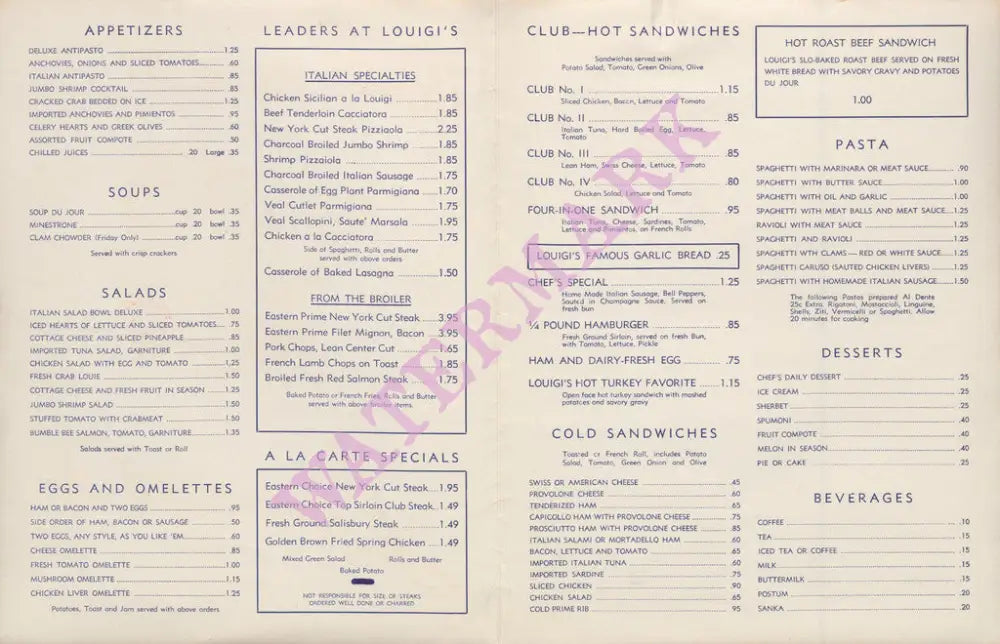 Imagine sitting late at night over a plate of spaghetti in Louigi's Italian Charcoal Broiler in Las Vegas when the door opens and in walks …..The Rat Pack. Frank Sinatra, Dean Martin, Sammy Davis Jr, Peter Lawford and Joey Bishop were all regulars at this family-run restaurant on the famous Las Vegas strip in the 1960s. They would arrive after the midnight show at The Sands Hotel and party in the main dining room till the wee hours, smoking, eating and drinking, alongside a bevy of glamorous women.