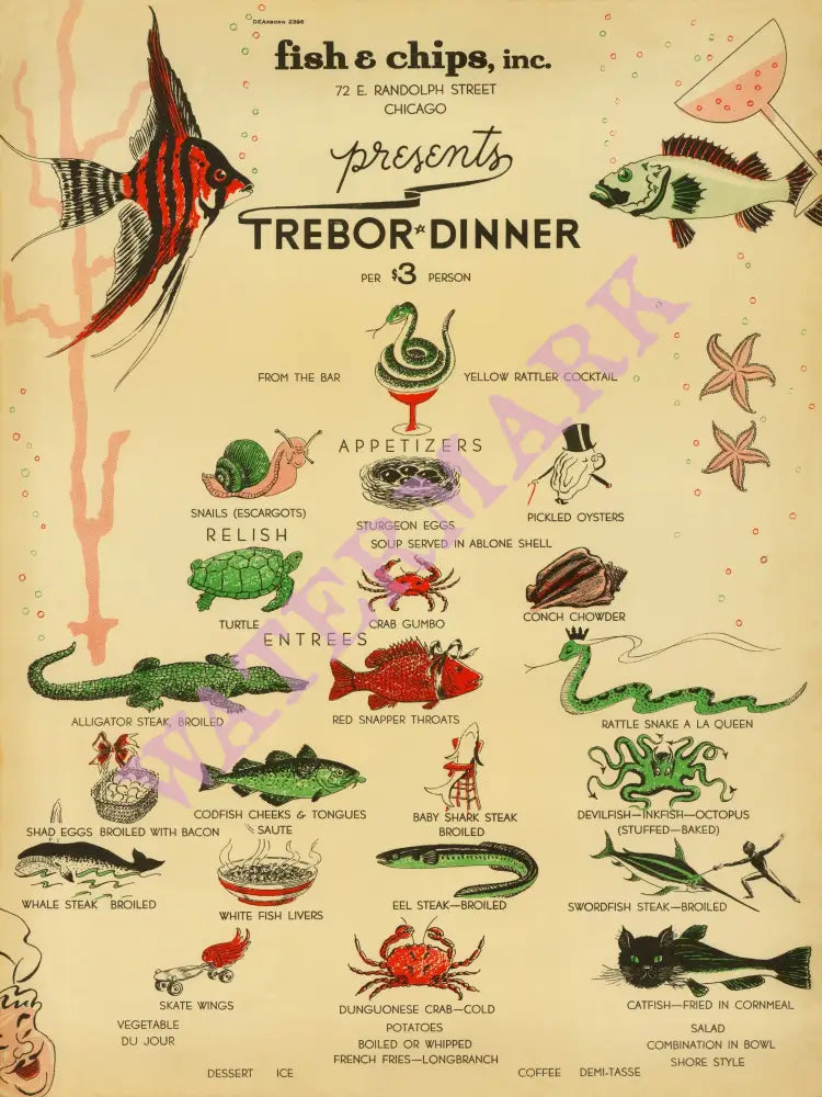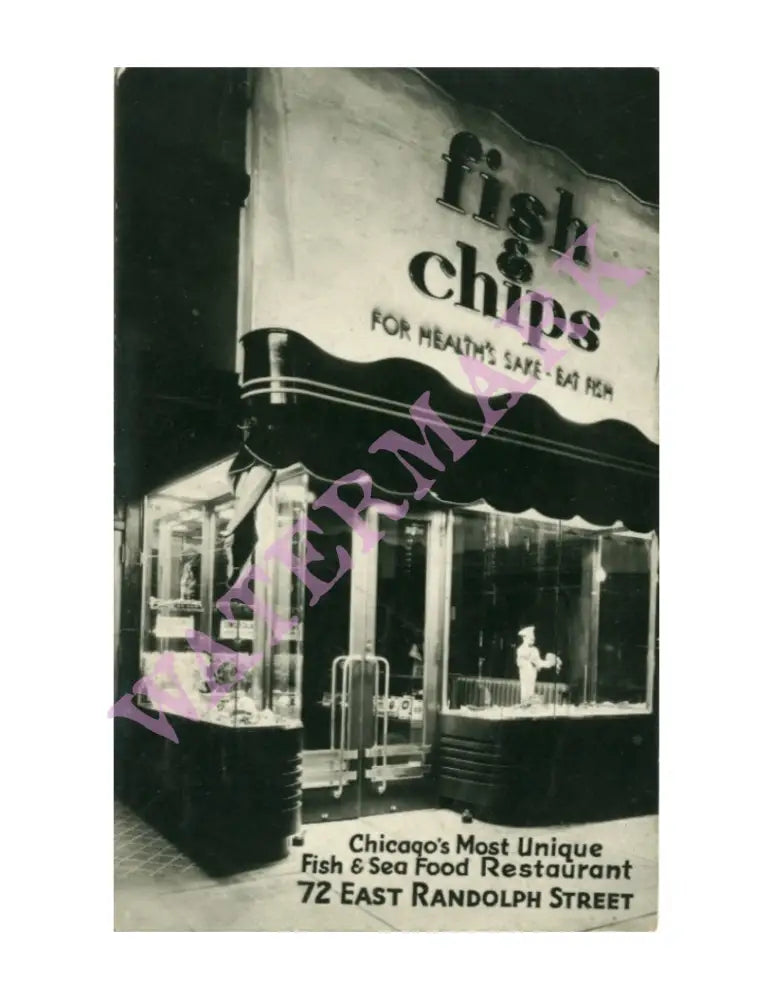 Located at 72 E. Randolph Street in downtown Chicago and billed as ‘Chicago's Most Unique Fish & Sea Food Restaurant,’ its motto was FOR HEALTH'S SAKE - EAT FISH.