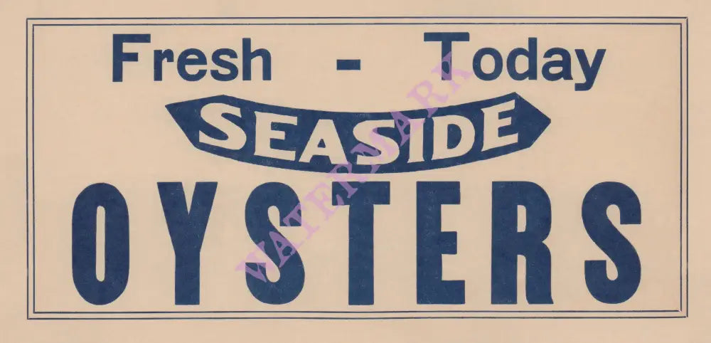 Seaside Oysters grow on the ocean side of Virginia's Eastern and a chewy salty and full-flavored oyster. With three elegant fonts and the word seaside cleverly accentuated to suggest the movement of waves, we’d like to think this sign hung in many long-forgotten oyster shacks and restaurants. We have no way to accurately date this article of vintage oyster sign but we think it is likely to be sometime in the 1930s. As with all good design, it still holds up beautifully today.