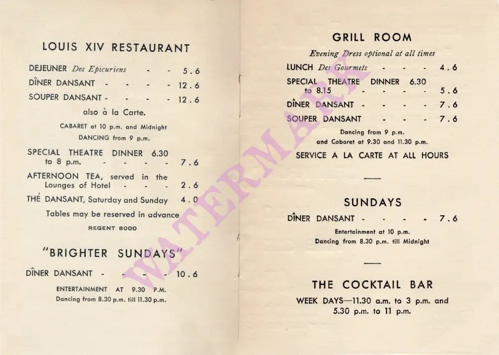 Staff drew water from the property's own well so guests did not have to drink from the city's then questionable public water supply. By the time a guest of the hotel could sip a Piccadilly Cocktail from this 1937 menu, there were no concerns regarding the quality of the ice in one's glass.