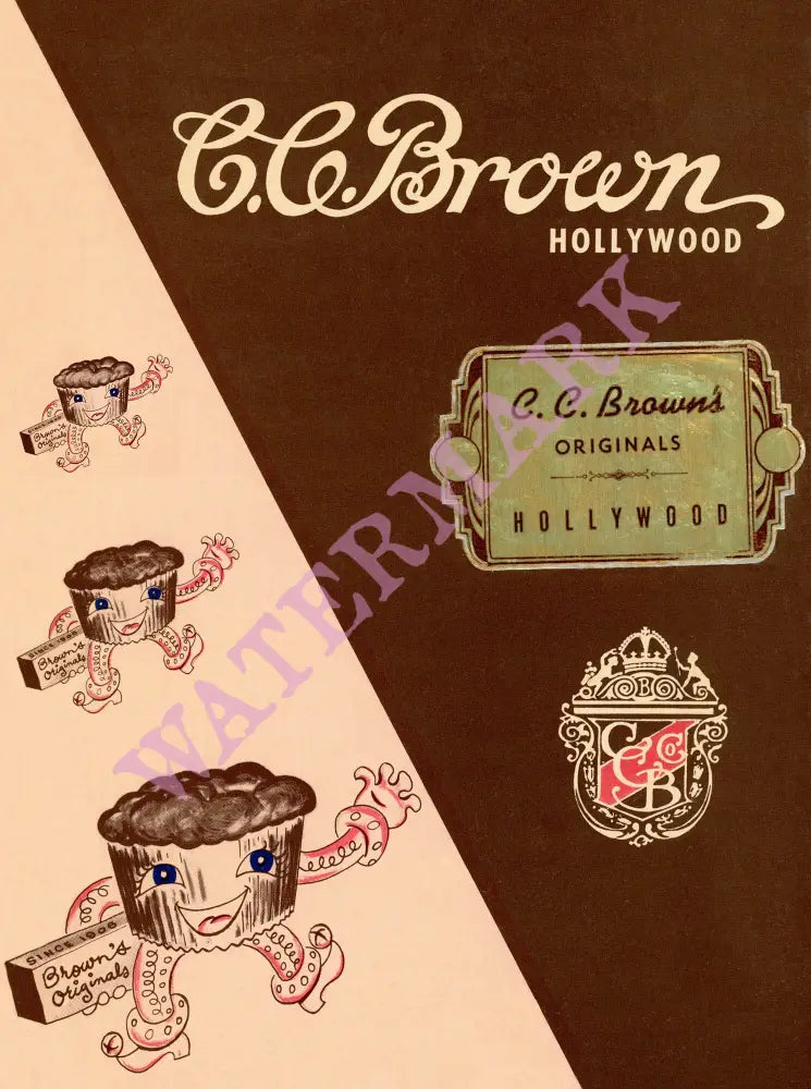 CC Brown opened as a candy shop in downtown Los Angeles, California, in 1906 with founder Clifton Hibbard Brown and his father Clarence Clifton Brown (hence the name CC Brown) using copper kettles and candy-making equipment brought from their home in Ohio by covered wagon.