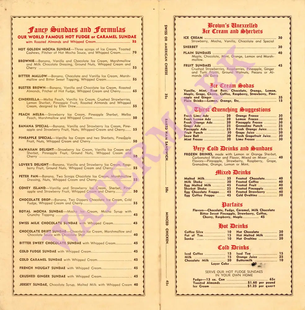 Other innovative ice cream confections included the Lovers’ Delight (for two), the Buster Brown and the Peter Pan.