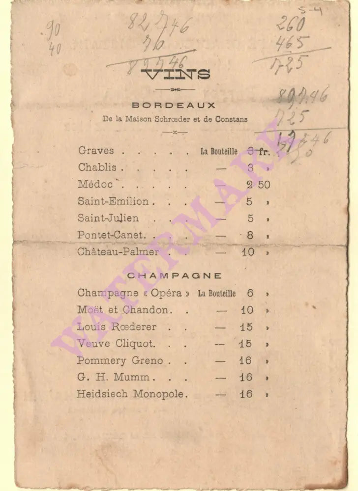 Pavement cafes like the Napolitain stayed open almost 24 hours, serving food from early morning till the last drunken revelers went home in the early hours. The wine list is short and favoured fine champagnes.