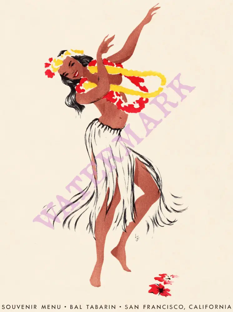 The delightful menu cover showing a Hula girl was from the Bal Tabarin nightclub and we know it’s dated 1939/40 because it offered an Exposition Special Supper Plate, served after 11pm and costing $1.25.