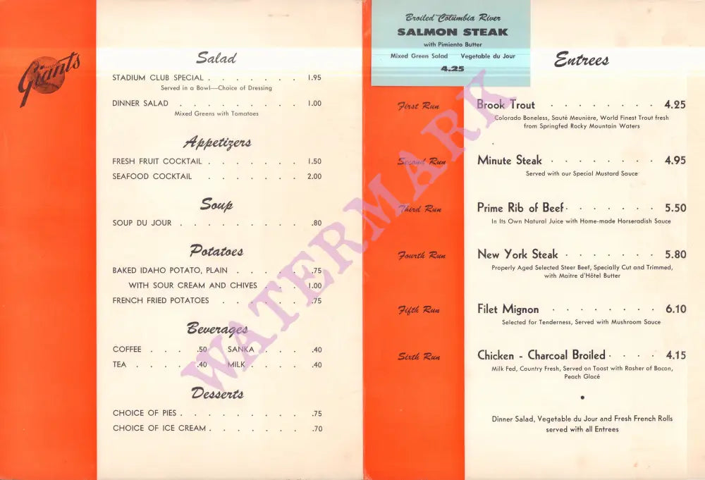 This colorful and strikingly designed 1970s menu cover was for the Stadium Club, a premier venue within the historic San Francisco stadium, offering members, season ticket holders and guests an upscale dining experience with views of the field.