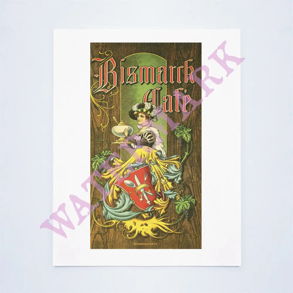 The Bismarck Café was a restaurant in San Francisco in the 1900s where hearty portions of steak and bread and unlimited jugs of beer were served to patrons. Located in the Pacific Building on Market Street, it was called “the largest and finest café in the city.” This impressive menu cover with a heraldic design was printed by the Louis Roesch Company, a local firm.