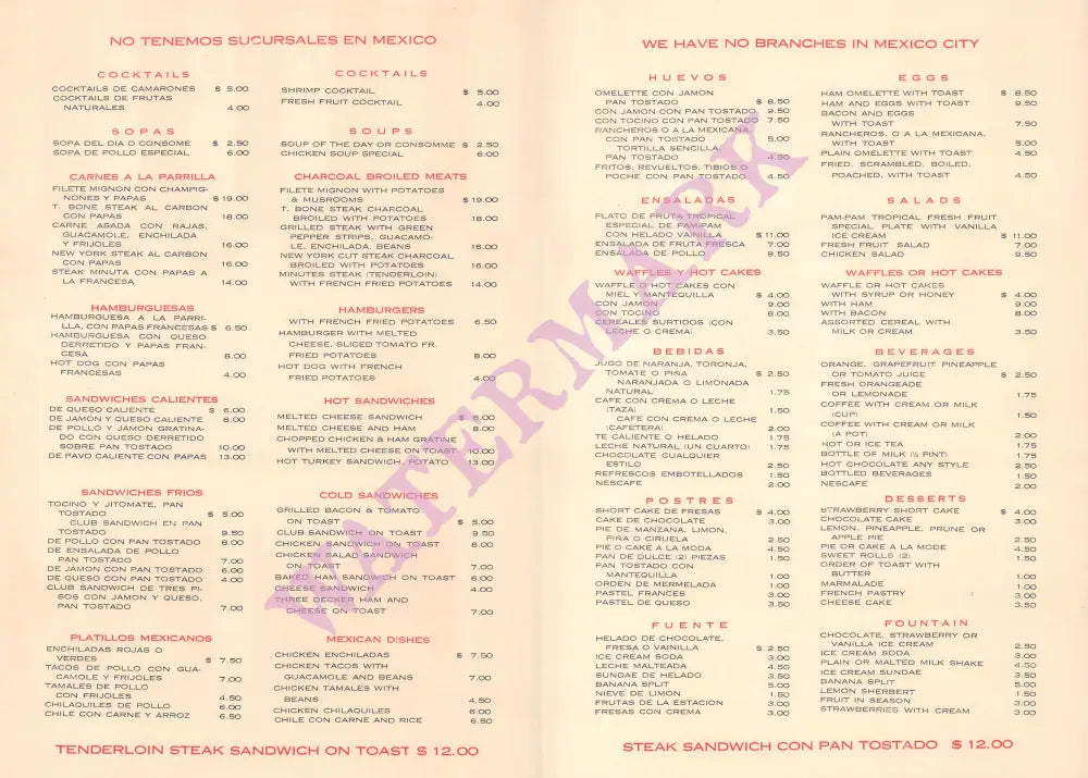 American fare such as hamburgers, waffles and sandwiches were sold along with Mexican dishes.