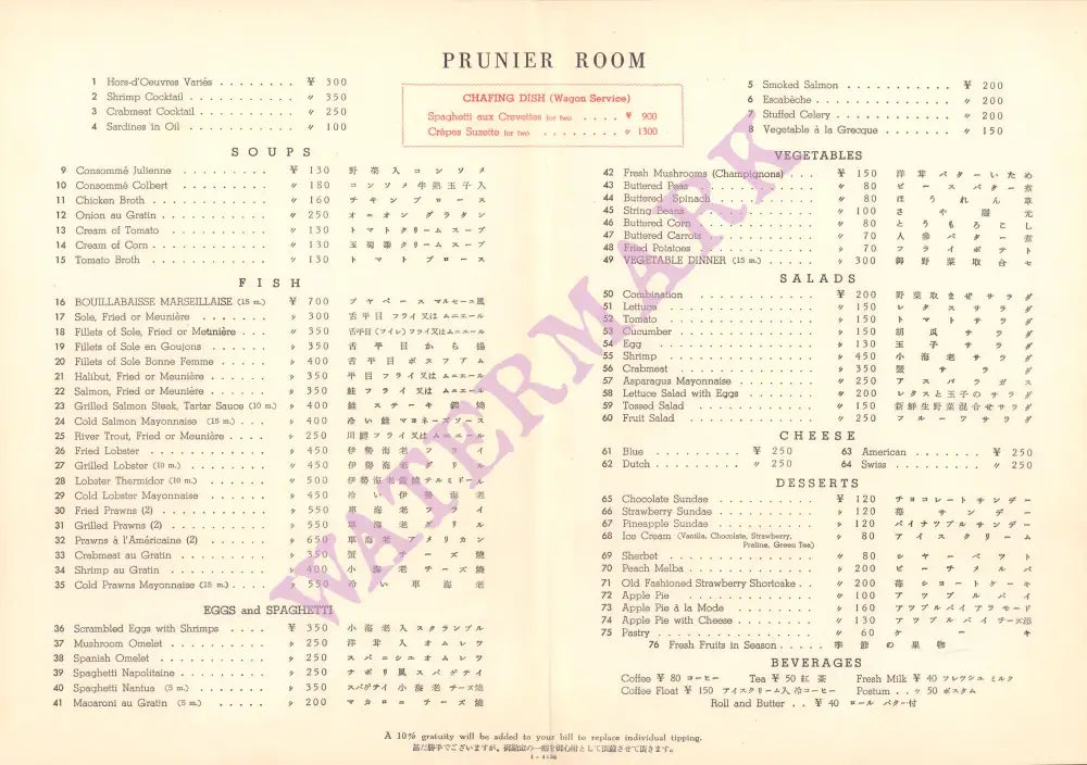This 1956 menu was from Wright's era, before the hotel was demolished in 1968 and replaced with a high-rise structure.