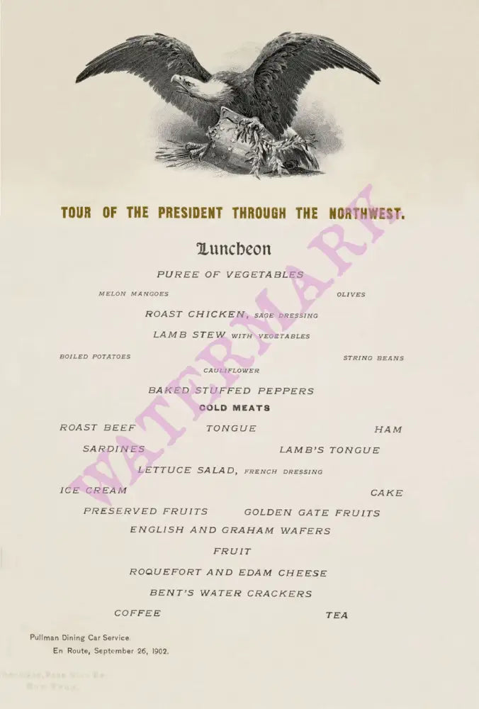Tour Of President Theodore Roosevelt Through The Northwest 1902 - Luncheon Menu
