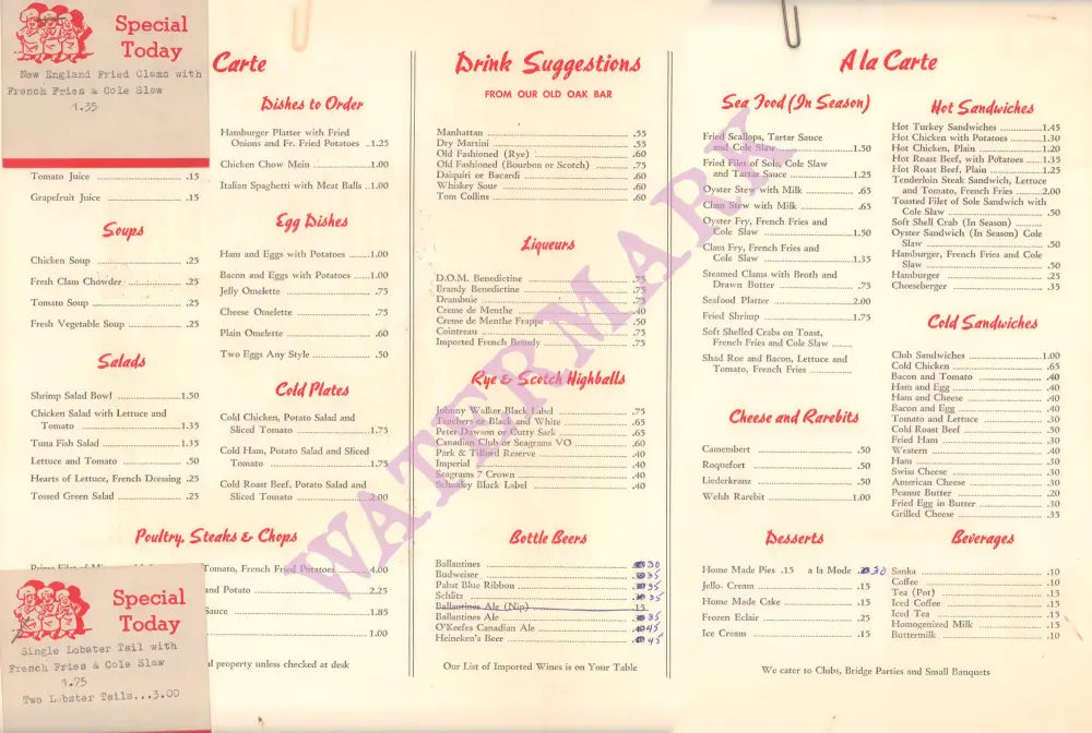 From the prices listed for food and drink we believe this menu is from the early 1950s, shortly after the so-called Sultan of Swat died at the age of 53.