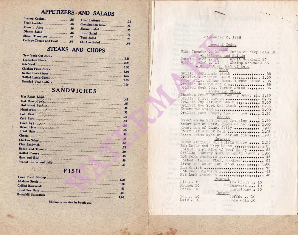 This menu is dated 1946, and we’re not sure when Catalina Café closed.