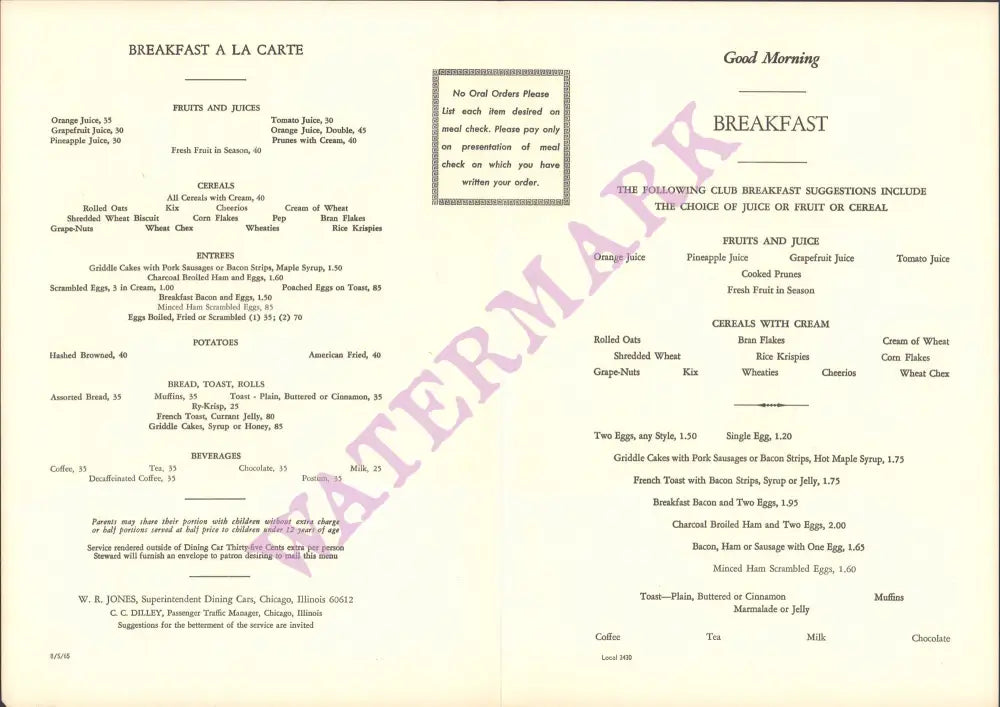 Each print is accompanied by a copy of the interior menu or cover.