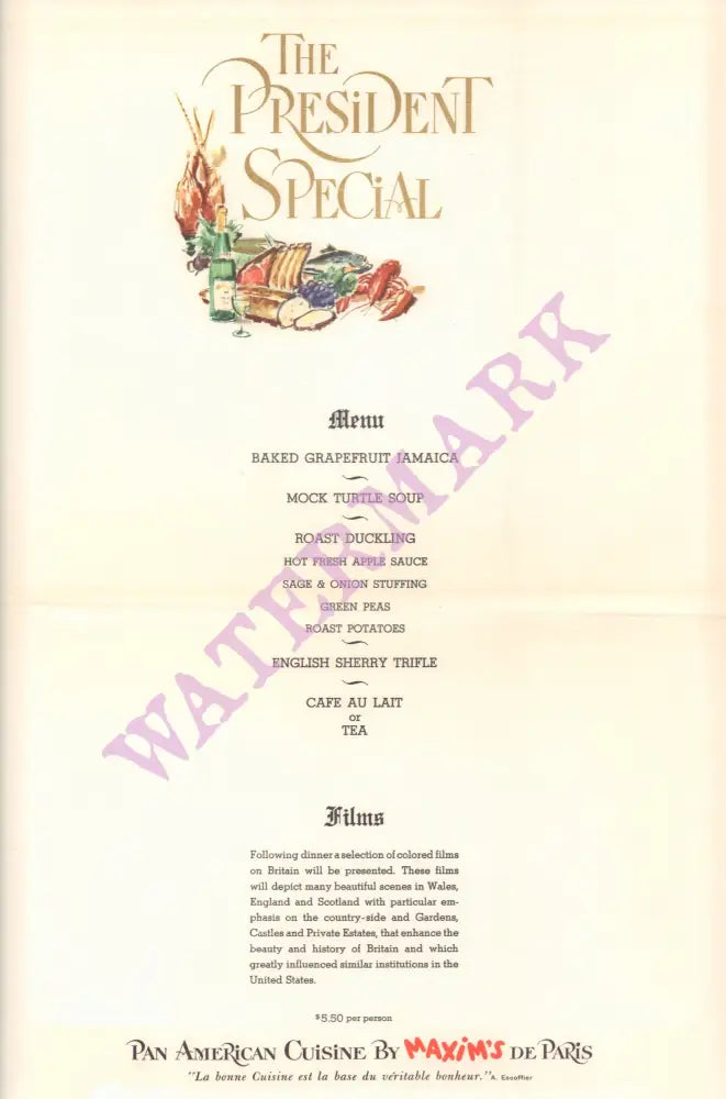 Jacques Liozu, the illustrator of this Pan American in-flight menu art, was born in Albi in the south of France in 1910 and died in Bourg-Madame in 1974. He is best known for his maps, but he also illustrated postcards as well as educational and historical stories for young people. He was most active in the 1940s and 50s.
