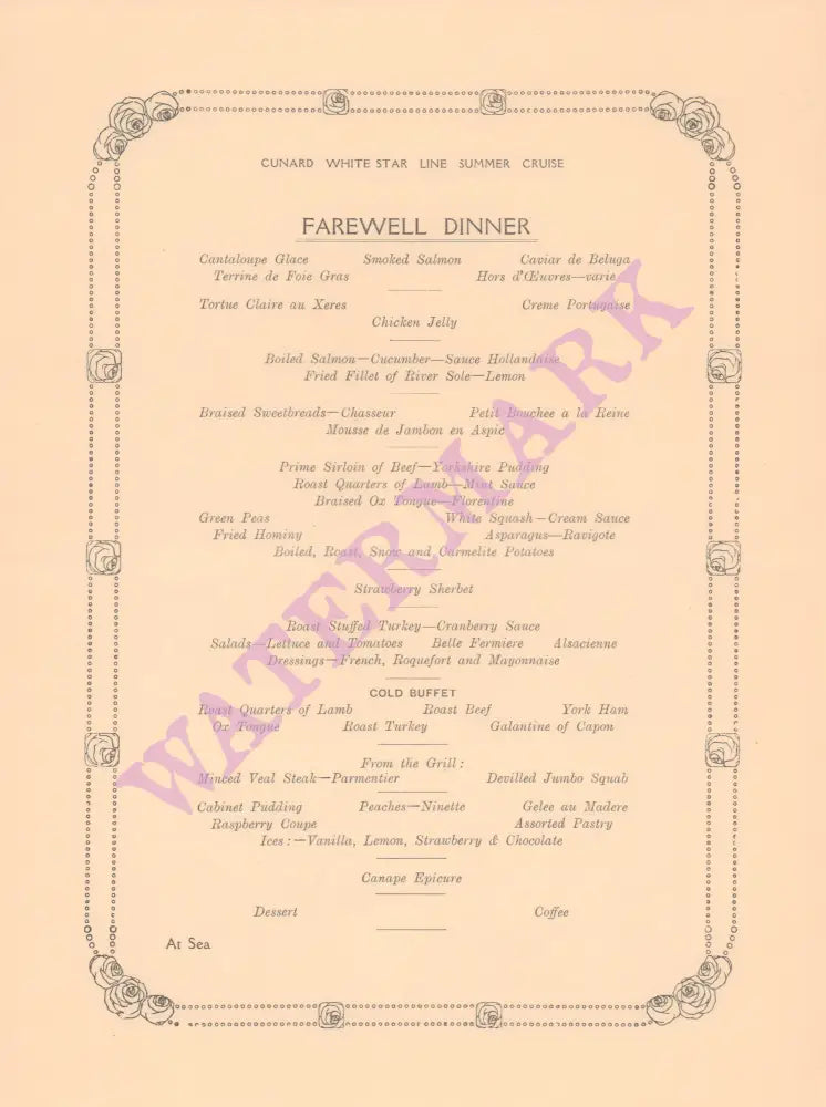 It must be fun to celebrate a New Year on the ocean waves…..this charming vintage menu from the SS Laconia shows both passengers and the mythic creatures who live at the bottom of the sea celebrating in style. Dated 1936, this beautifully illustrated menu would have been put before passengers on a trip between Southampton and New York. Commandeered for service during WWII, the Laconia was sunk in 1942.