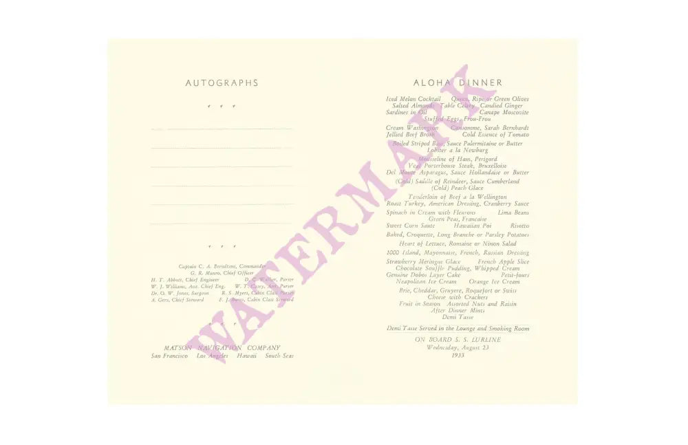 SS Lurline was the third Matson Lines vessel to hold that name and the last of four fast and luxurious ocean liners that Matson built for the Hawaii and Australasia runs from the West Coast of the United States.