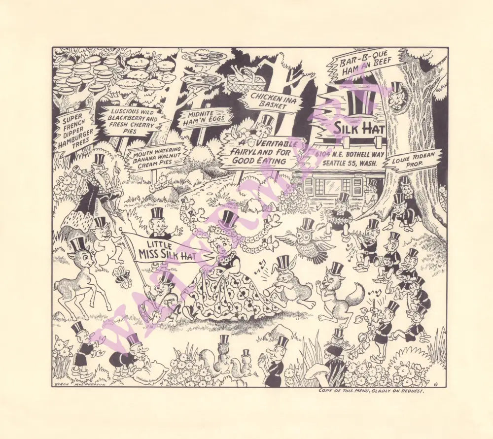 The Silk Hat was one of those and this fine illustration is Byron MacPherson, who was well-known as an illustrator of maps, some serious, but many light-hearted such as this delightful depiction of Seattle.