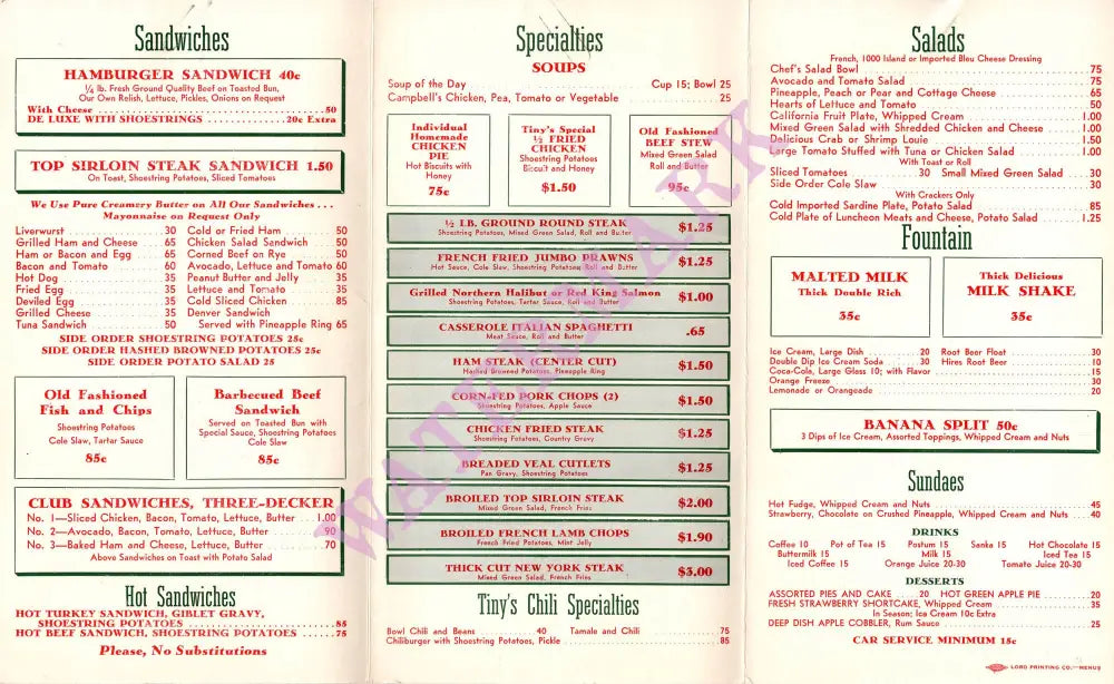 Cartoonist George McManus, famous for creating the comic strip Bringing Up Father, designed this menu cover for the Tiny's Drive-In.