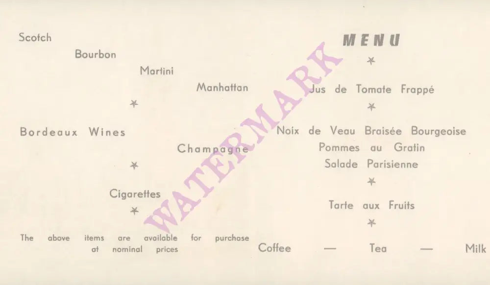 TWA David Klein, Frankfurt In-flight Menu Art 1950s